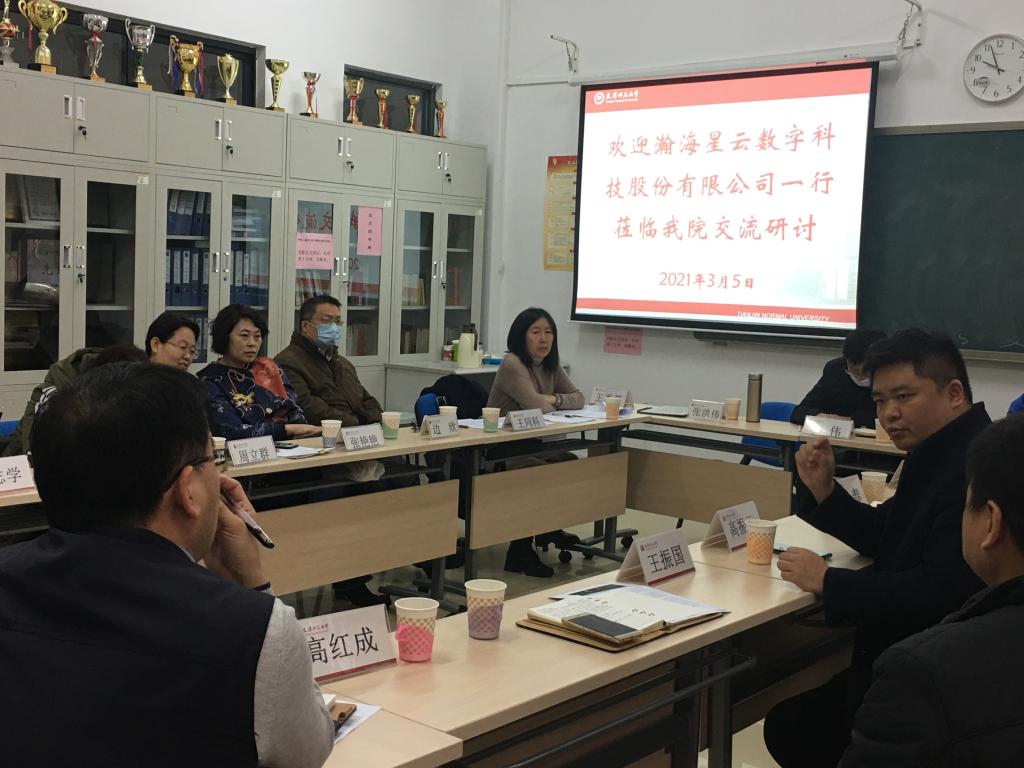 2021年3月5日,瀚海星云数字科技股份有限公司CEO高振元,项目经理翟董恒莅临我院进行专业建设交流研讨。我院党委书记王振国、院长赵春、副院长高红成、副院长常慧宾,各系主任、教研室主任、专业建设负责人及多名教师参会。