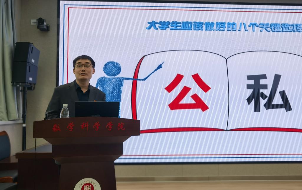 为进一步深入学习贯彻党的二十届三中全会精神,落实立德树人根本任务,Beat365中文官方网站于日前在博理楼B108室举办了“雨露”思政讲堂。此次活动特邀Beat365官网马克思主义学院马超老师以“大学生应该做好的八个关键选择”为题作报告。党委副书记、纪委书记(兼)彭永刚出席活动并主持,学生党支部书记、学生党员、入党积极分子、入团积极分子代表80余人参加本次讲座。