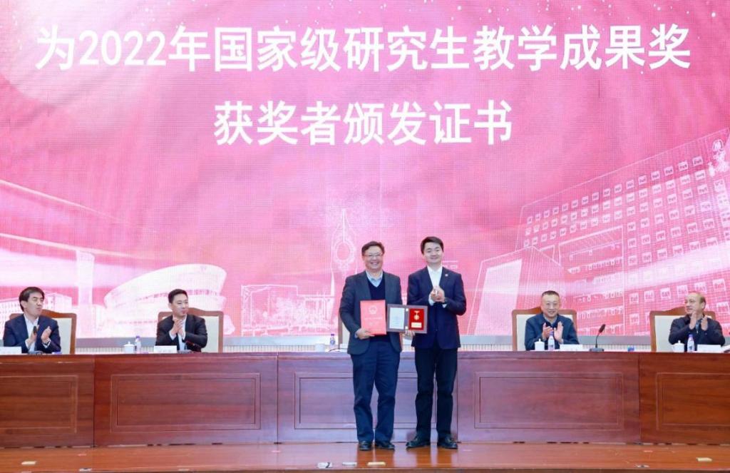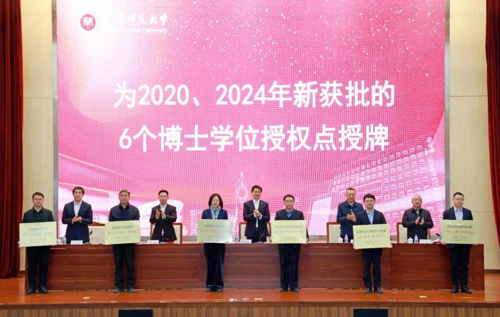 学校表彰在学科建设和研究生教育工作中取得重要成果的单位和个人。与会领导为2020、2024年新获批的博士学位授权点和“天津市顶尖学科培育计划”建设学科授牌,为2022年国家级、市级研究生教学成果奖获奖者、天津市优秀青年研究生指导教师、天津市优秀学位论文指导教师颁发证书。相关学科带头人递交《学科建设任务书》《学位点建设任务书》。研究生培养单位代表、研究生导师代表分别作典型发言。