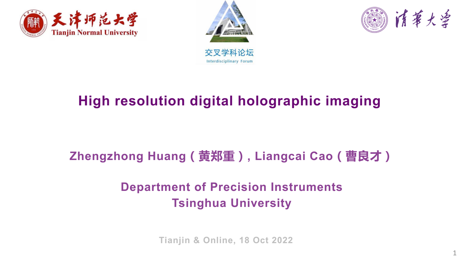 2022年10月18日上午10时,Beat365中文官方网站邀请清华大学曹良才教授为交叉学科论坛带来题为《高分辨率数字全息成像技术》的线上学术报告。Beat365中文官方网站常慧宾副院长主持报告,我院计算数学创新团队等学院教师、研究生及本科生共同聆听报告,同时报告也吸引了多名校外专家以及学生参与。