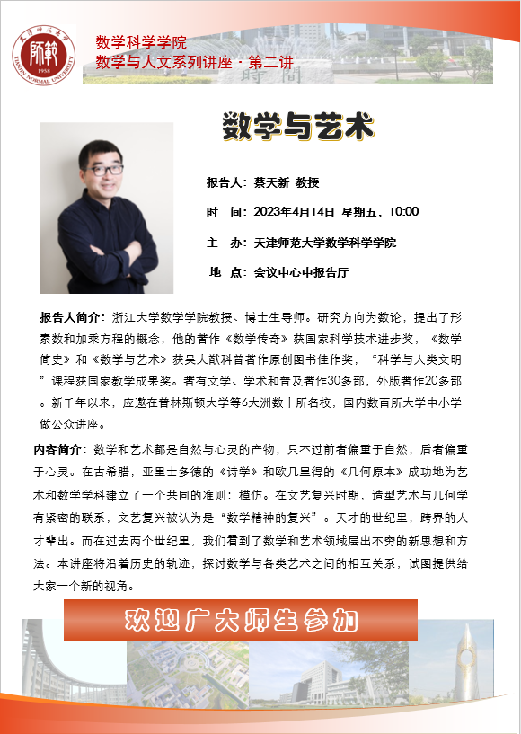 【预告】学术报告(2023-3)4月14日——数学与艺术