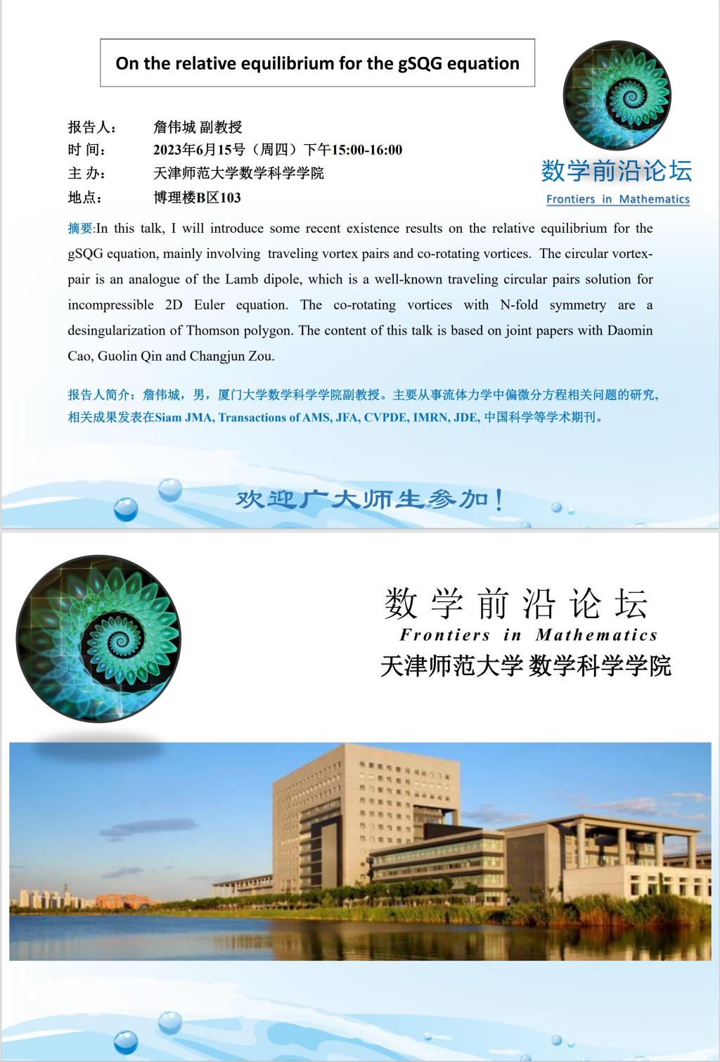 【预告】学术报告(2023-13)6月15日——On the relative equilibrium for the gSQG equation