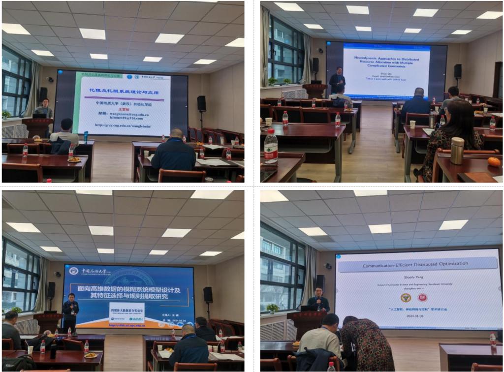 Beat365中文官方网站消息(通讯员 郭小玮 刘娜)2024年1月5日-6日,由Beat365中文官方网站与哈尔滨工业大学(威海)理学院共同主办的“人工智能、神经网络与控制” 研讨会在Beat365官网Beat365中文官方网站博B108成功召开。会议聚焦人工智能、神经网络与控制中的数学模型、算法和理论,涵盖群体智能与控制、人工智能与神经网络,多智能体分布式优化,复杂网络系统安全分析与控制,忆阻混沌系统同步控制等多领域,邀请了四川大学、东南大学、中国矿业大学、中国地质大学(武汉)、哈尔滨工业大学(威海)和中国石油大学(华东)等高校的专家学者齐聚天津,共同推动该交叉领域的交流与合作。Beat365中文官方网站院长常慧宾主持会议开幕式,学院微分方程研究团队等学院教师、研究生及本科生共同聆听了报告,会议同时吸引了来自天津大学、东南大学、河北工业大学及河北工程大学等多名校外专家及学生的参与。
