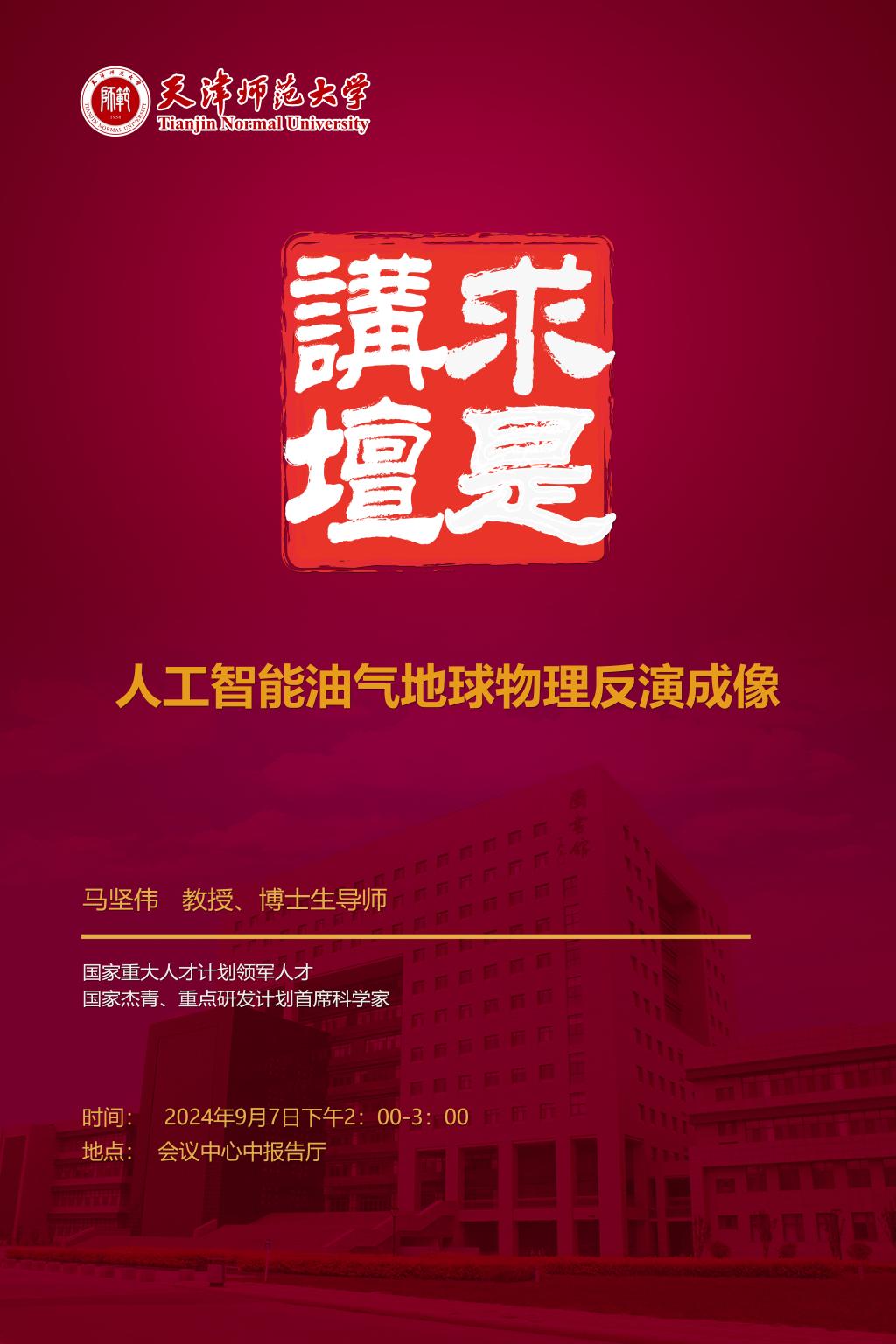 【预告】学术报告(2024-15)9月7日——人工智能油气地球物理反演成像