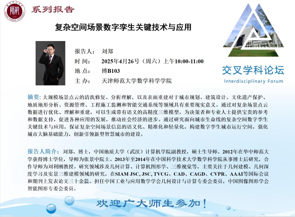 【预告】学术报告(2025-11)4月26日——复杂空间场景数字孪生关键技术与应用
