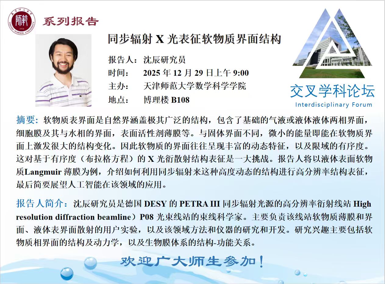 【预告】学术报告(2025-58)12月29日-同步辐射X光表征软物质界面结构