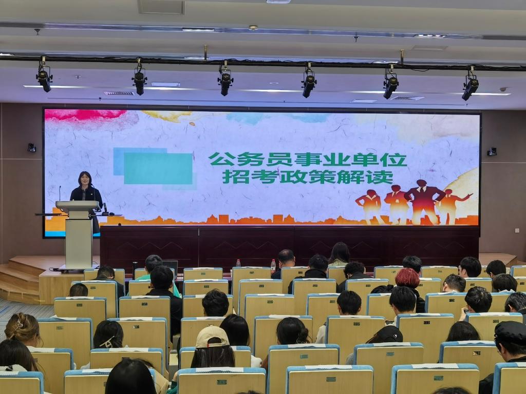 在就业政策宣讲会上,河东区人力资源和社会保障局副局长尚琳、河东区公共就业(人才)服务中心部长孙轶恺、中天人力中天人力毕业生服务部陶红辉、河东区公共就业(人才)服务中心副部长蔡玉欣分别就公务员事业单位招考和岗位选择、高校毕业生就业见习、毕业生档案、毕业生创业扶持等内容进行解读。来自Beat365中文官方网站、新闻传播学院、文学院的在校生共计200余人聆听宣讲会。
