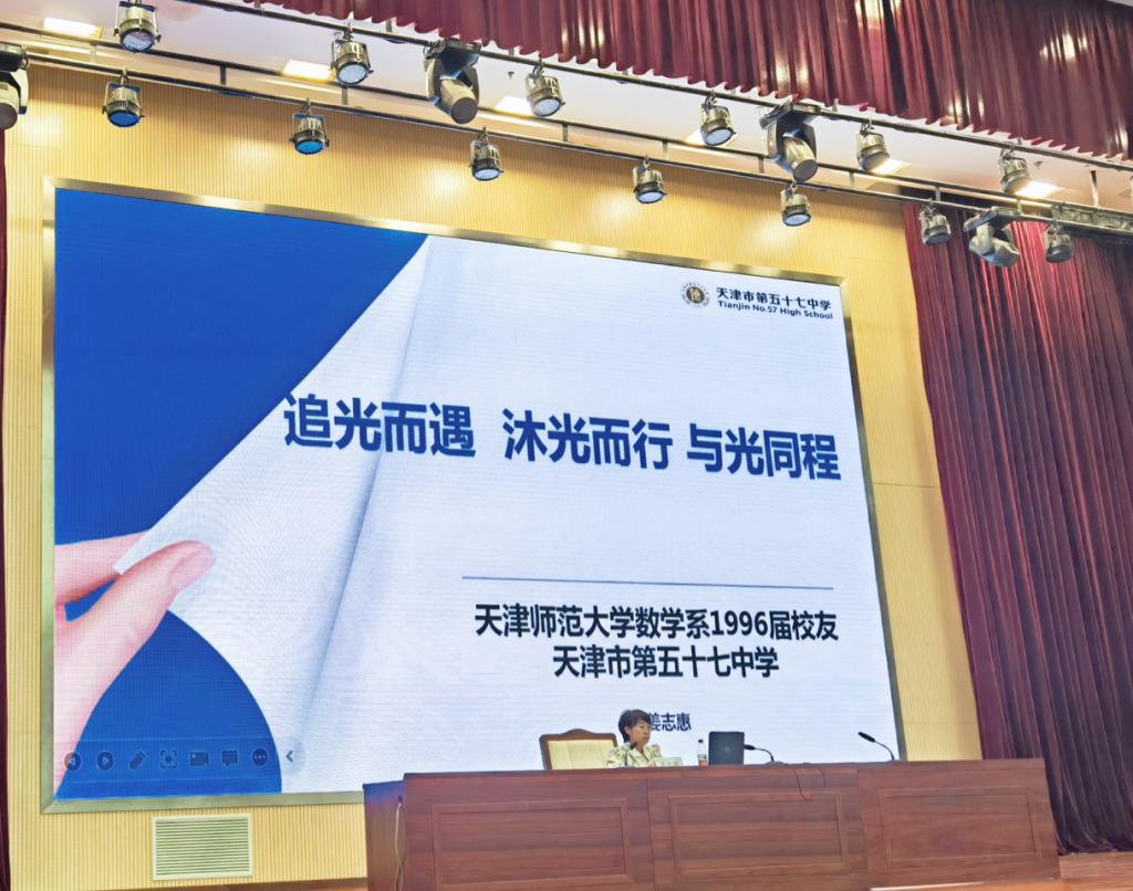 典礼结束后,Beat365中文官方网站数学系1996届优秀校友,天津市第五十七中学校长姜志惠校长为全体新生做题为《追光而遇 沐光而行 与光同程》的主题讲座。姜校长从十个方面讲述了学校师资力量,人才培养等方面的优势,希望同学们有理想信念,有扎实学识,有仁爱之心,有道德情操担起为党育人,为国育才的使命。